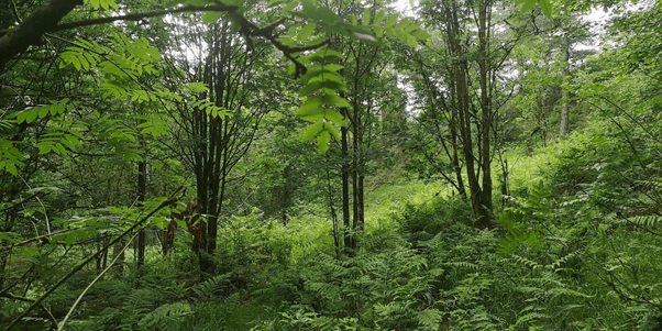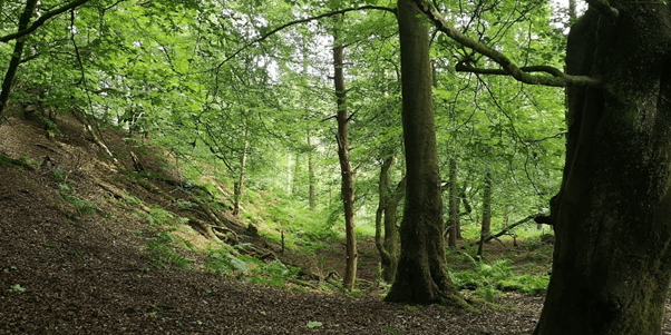 I took the path that takes you up through the woods to avoid anyone who might have got up early and was on the main path. It’s a path I have run many times before and it takes you round the top of Ogden and as I say you avoid most of the people who go there. I carried on this path looping round until on the first descent I took a little known path on the left and entered the woods.
