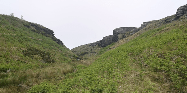 Do I go right and back to Ogden or go up the steps on fire and across the moor? I’d only done 2 miles so I went up the steps on fire as I wanted to do at least 3 miles if not more. Up the steps I went and across the tops heading towards the Withens Road. There’s a bridge at the top of Skirden Clough and just after here is a path I was going to take back down to Ogden. I noticed a gate on the left that seemed to lead to a trail that went along the top of the clough back to Ogden and back to the climb to the tooth.