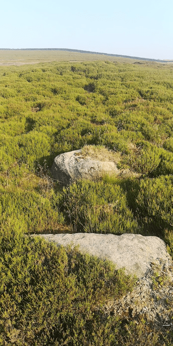 I saw a stone poking out of the heather and assumed it was one of the Cuckoo Stones. I found another stone nearby which may be the other one as one of them is prone to falling over and saw a large mound of earth which looked like a burial mound. Although I can’t say 100% that these are the Cuckoo Stones and the burial mound of the slain giant I am fairly certain they are as there is nothing else around there that could be them. It will be interesting to see what someone else says.