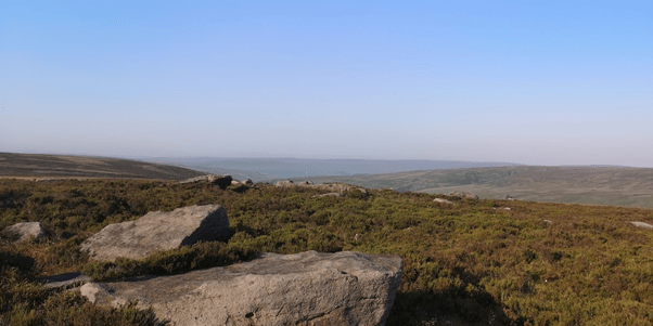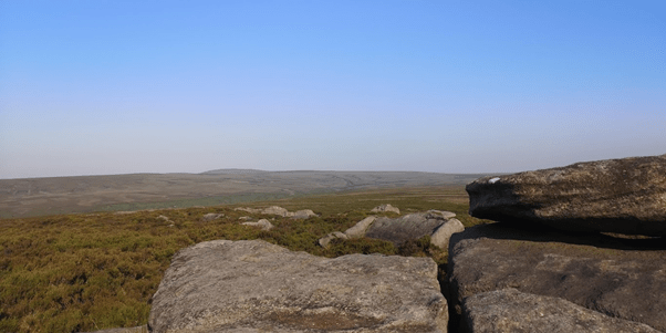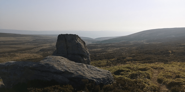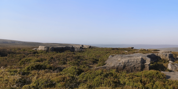 I was taking it easy, I had run over 8 miles in the heat the day before and I didn’t want to overdo it. My knee was still aching a bit and I could feel my glutes aching too so a nice steady pace was the order of the day. I went past the Bronte Waterfalls and up the first climb to the trail above South Dean Beck. I ran on here until I got to the stile and then I began to look at the heather to my right for the Cuckoo Stones and a prehistoric burial mound.