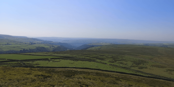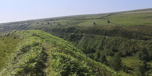 I made it through the trail and back onto the main path where I could run again. My legs were aching now and I was starting to seize up but I ran as best as I could. I got to the bridge and took the climb back up to Walshaw the reverse of the Heptonstall fell race. It’s a steep but short climb and cuts out at least 2 miles if not more. I headed through the farm and onto the trail towards Lumb Waterfalls. I detoured up to Shackleton Knoll as I usually do now and headed back down the other side but I somehow lost the path even though I have been up and down here many times.