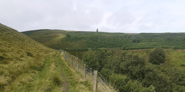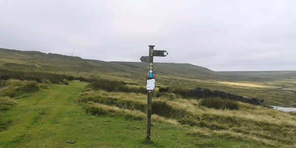 At the bottom of the descent you run across a small field and carry on the Millennium Way at the side of Leeming reservoir before carrying on through Leeming and Oxenhope for the race. I didn’t want to do this as I haven’t run further than 10 miles for a long time and I’m very conscious of how I’ve been feeling recently. I had, had a look on OS maps for an alternative route and I spotted a trail leading up to the conduit that is part of the old Oxenhope feel race route. I was aware that seeing a path on OS maps and finding it out on the moors and fells can be very different but not today. I turned left at the end of the descent and immediately there was a gate leading to a trial. I was pleasantly surprised to find it so easily and I could tell straight away that this was the trail I was looking for. I took it and ran up to the conduit noting some other trails going off it on my way up. I love it when I discover a new trail and it leads to new ones or as in this case also allows me to do a loop and come back to where I started or to another place without turning round and running back up where I have come from which I hate.