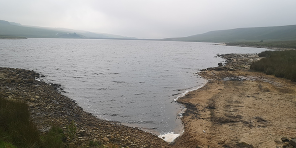 I carried on the Pennine Way towards Warland reservoir looking for a path going off to my right to take me to Gaddings Dam. At Gaddings I was disappointed to say the least. I have heard so much about it and had built up this mental image of it in my mind and the reality didn’t match it in any way. It’s a small reservoir with a small beach in one corner or it was today. The reservoir was surrounded by cows with calves so running round it was out of the question and I decided to change my plan and go to the other reservoirs near here instead.