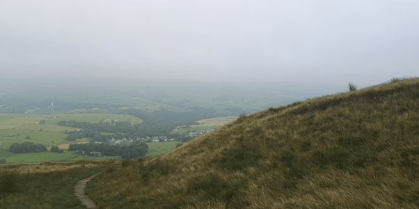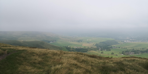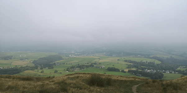 The trail brought me out on the usual trail but I like discovering new paths and it’s always useful to know them if you can’t go your usual route for any reason. At the crossroads on the trail I could see Lumbutts below me and the moors around Todmorden stretching away in the mist. I felt a calmness come over me seeing this view. After the past few days when it’s been too hot to run it was nice to be able to breath and feel the air on my body.