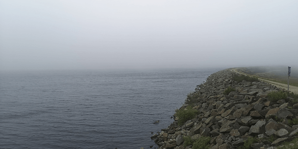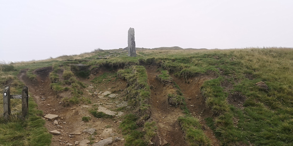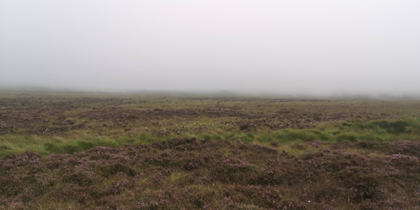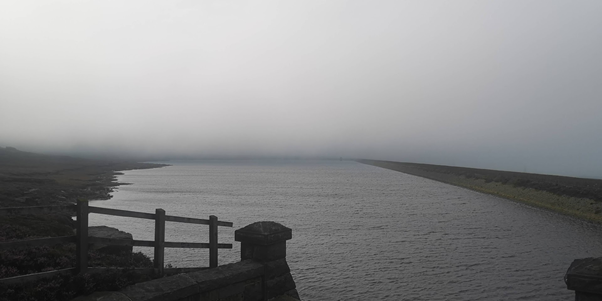 I went back on the path I had just run on and rejoined the Pennine Way and headed towards Warland reservoir. Warland isn’t far from Gaddings and I have been here before but a long time ago. It’s higher up and the wind had picked up blowing mist off the moors over the reservoir making it look like a scene from a Sherlock Holmes film all very mysterious and ghostly in a gothic way. I half expected to see a dead body float to the top of the water. Thankfully none did! Stoodley Pike appeared briefly in the distance looking equally mysterious in the mist.
