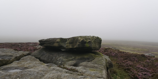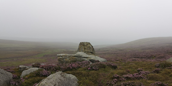 We took turns in leading the run. Claire led on the way up to the stones and we were both moving well now enjoying the feeling of moving freely and easily over the moors. We got to the stones and had a few minutes there. Both Claire and myself love this place and it’s very special to us. We’ve both been up to the stones before many times but this was our first time together. It was cool and misty so the views where not great, no Crow Hill, Boulsworth Hill or Ingleborough today but it didn’t take anything away from being at the stones again.
