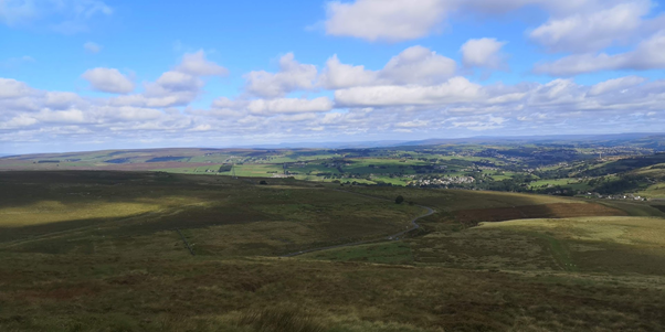 We over Oxenhope moor and rejoined the Calder Aire Link this bit being particularly difficult as it is wet rock and bog and we both struggled on here. Living close to here I have had some good runs on this bit but only when it’s been dry in summer. We got to the end and ran up Hambleton Lane. I pointed our Thornton Moor reservoir and Claire asked where Queensbury was and I pointed at a random hill and said there. I think it was the right one! Up the lane we started to run again and I took a trail off the main one because I find it more runnable and less of jumping from rock to rock.