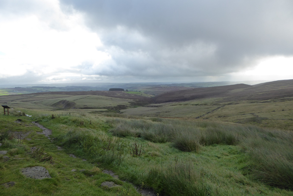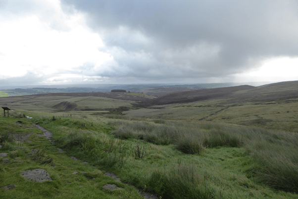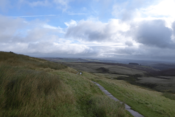 I carried on up the short, steep trail that takes you to the top of Stanbury Moor where it flattens out. I carried on the trail passing the trig point and taking the trail to my left that takes me to the stones. The trail was wet and muddy, unsurprising after the previous days run, but this did not stop me enjoying my run as I slipped, slopped across the top of the moor.