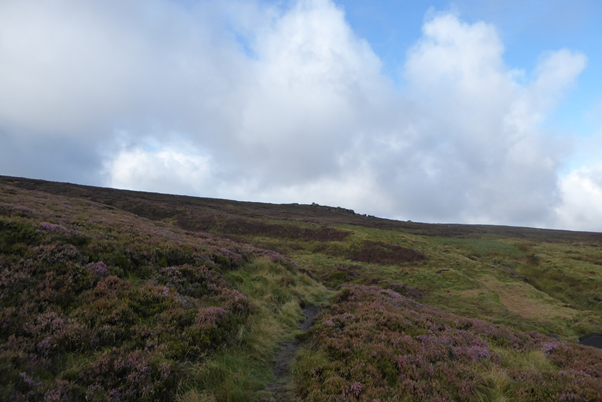 The dance show over I got out of my car and was almost blown away. The wind had not had chance to die down from it’s nighttime shenanigans and tried its best to take my top off to no avail. I put my waterproof on just incase the rain decided to come down once again and set off up the Pennine Way towards Top Withens. The trail was already drying out save for some puddles, and I had a pleasant run to Top Withens. I kept a decent but controlled pace, I saw no reason to overdo it today and soon the familiar outline of Top Withens came into view.