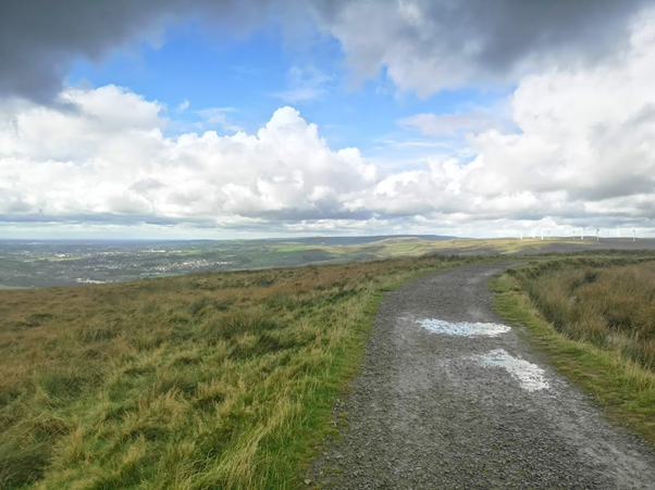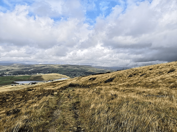 I went back to the pub and got on the right trail this time hoping I didn’t take a wrong turn and end up lost again! Fortunately I was on the right trial and even I couldn’t go wrong. It was a nice trail, nothing exciting in that but the views were simply stunning, so far reaching. I could literally see for miles and miles, Littleborough, Rochdale, skyscrapers in Manchester and beyond. I might have seen Liverpool as I could see some tall buildings on the horizon but I wasn’t sure. It didn’t matter. The views were what mattered and nothing else. I felt very lucky to be out, free and able to see and experience these amazing views.